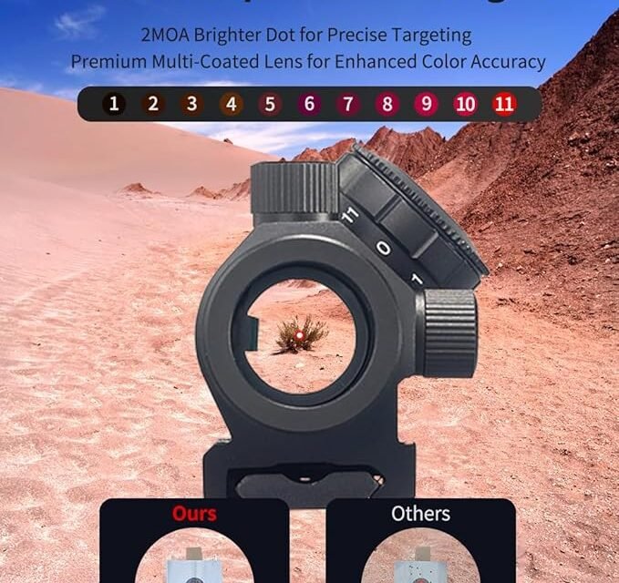• ACCURATE – This Beileshi 3-4 MOA red dot sight allows for accurate, both eyes open shooting. Multi-coated scratch resistant lens provides enhanced image clarity and increases light transmission during low light situations.
