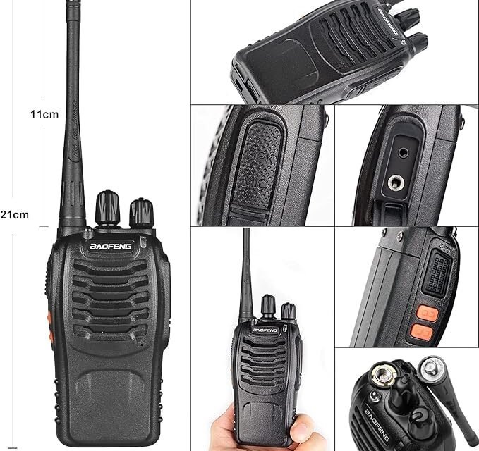 • The range of long-distance walkie-talkie communication depends very much on the terrain. Walkie-talkies can communicate up to 5km in places where there are no obstacles (such as at sea). Radios are more suitable for construction teams, fire departments, warehouses, factories, hotels, churches, schools, road trips, family camping and hunting, cruise ships,the mountains. In some cases is more stable than a mobile phone, especially in remote areas or in the wild where the reception is poor.